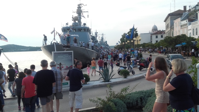 U skladu s modernom i skupom izložbom bio je i popratni dio pa su ispred izložbenim prostora Muzeja posjetitelji bili počašćeni buteljiranim, skupim vinima kakva se sigurno nisu pila za Rujanske bitke za Šibenik.