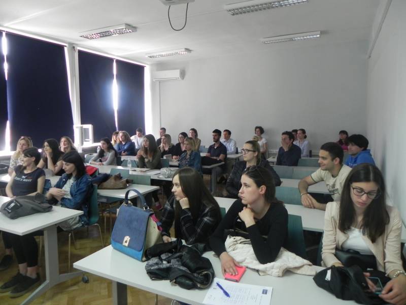Program Erasmus+ predstavio je dr.sc. Frane Urem, Erasmus koordinator na Veleučilištu u Šibeniku. U ovom programu studenti se mogu baviti sa četiri različite aktivnosti: volontiranje, praksa, učenje ili razmjena mladih. Do sada je sudjelovanje u ovom programu odobreno za dvoje studenata preddiplomskog stručnog studija Upravni studij, Marin Belak i Zrinka Vitalia, koji će tijekom zimskog semestra akademske godine 2017./2018. studirati u Kranju na Fakultetu za državne i europske studije. Oni su ostalim studentima podijelili svoja iskustva u samom procesu pripreme dokumentacije te prijavi na natječaj. Marija Dimitrijevska studentica sveučilišta Goce Delčev iz Makedonije govorila je o svojem boravku u Šibeniku i iskustvima tijekom mobilnosti u Erasmus programu na Veleučilištu u Šibeniku
