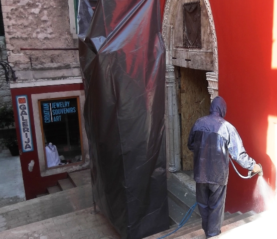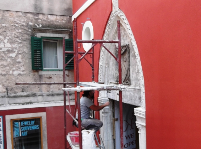 Nakon što je uređena fasada palače Divnić koja postaje hotel Krešimir, a nalazi se na takozvanom trgu Medulić na red je došao i gotički portal. Stručnjaci Hrvatskog konzervatorskog zavoda iz Splita danas su ga privremeno očistili kako bi se mogli staviti otvori, a nakon sezone će krenuti u njegovo restauriranje.