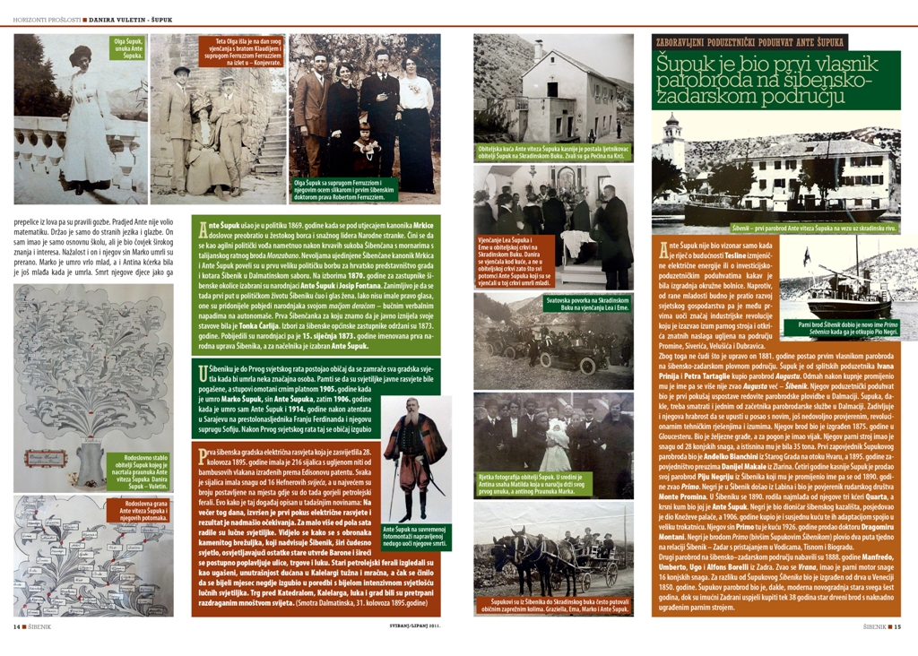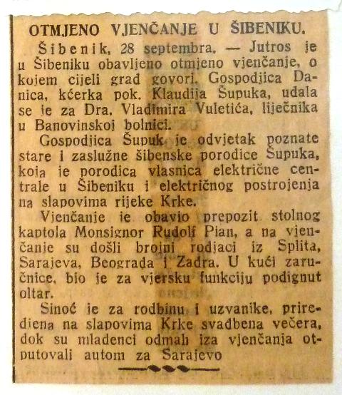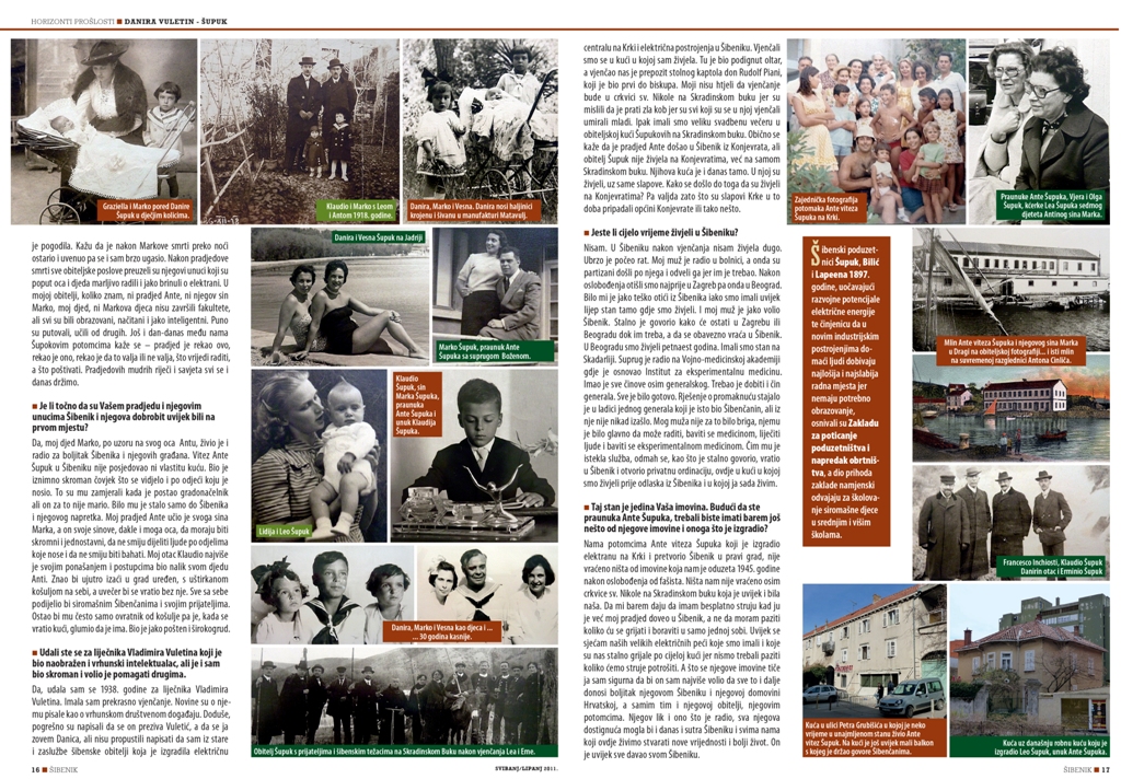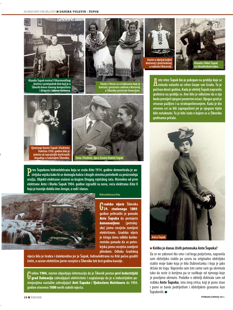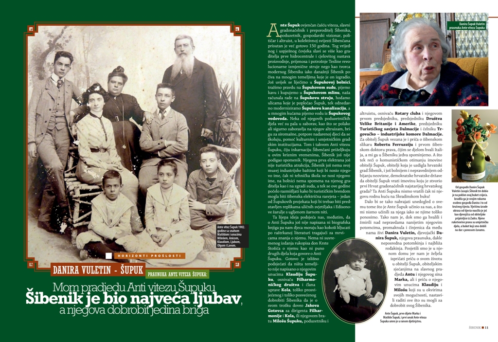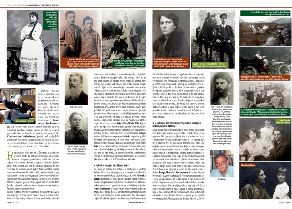 Danira Vuletin – Šupuk, praunuka Ante Viteza Šupuka (1838. – 1904.), oca modernog Šibenika, gradonačelnika Šibenika od 1870. do 1903. godine preminula je danas u Šibeniku u 99 godini. Do zadnjeg trenutka bila je lucidna i prepričavala je svaki detalj iz povijesti svoje slavne obitelji na koju je bila vrlo ponosna.