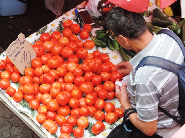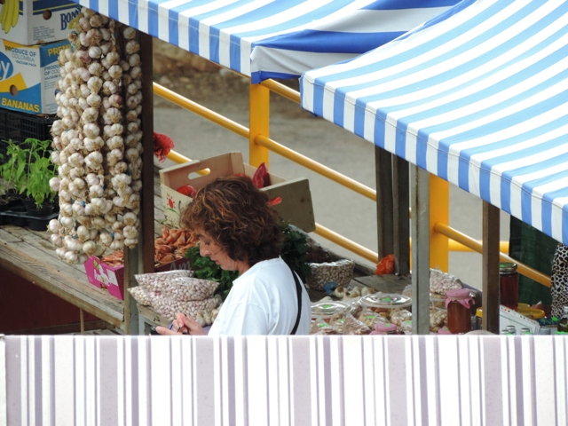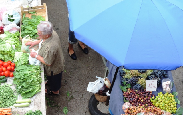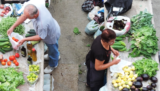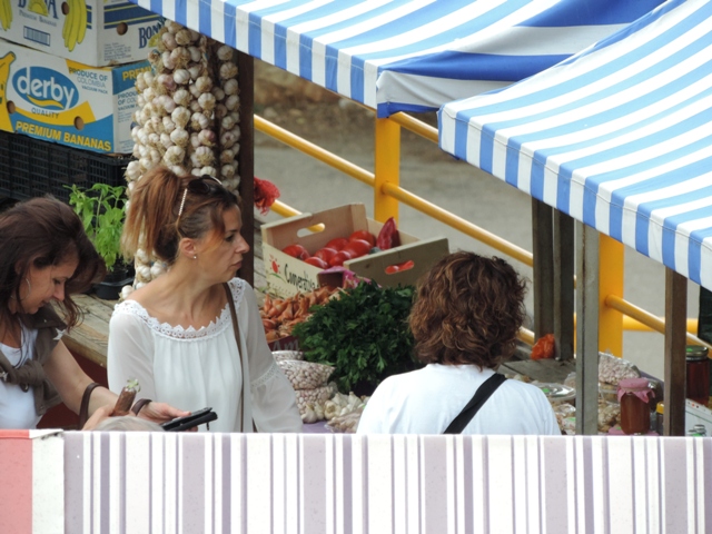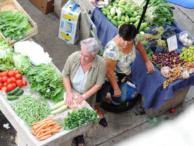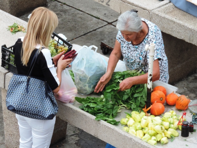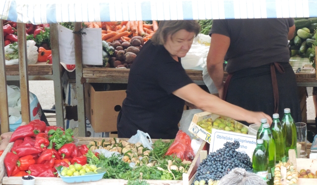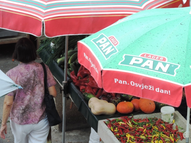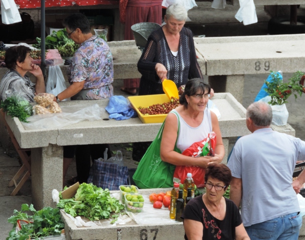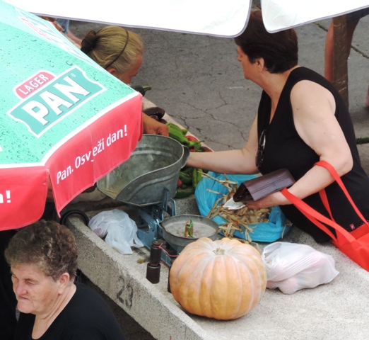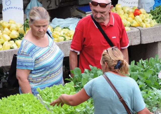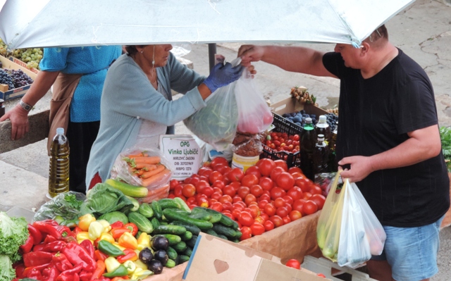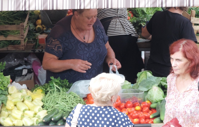 Šibenčani su jutros, očekujući kišu uranili u subotnju kupnju na pijacu, a ponuda je pretežno dobra – uobičajeno više i povrće za ovo doba godine. Posebnu pažnju privukla je jedna postarija bakica koja je na banku ispred sebe imala svega pomalo, ali sve domaće i mediteransko – suhe smokve, svježe smokve, crno i bijelo grožđe, pomidore, zelje, rigu... Neki su bez dvojbe kupovati smatrajući da je sve iz domaće proizvodnje, ali bilo i već uobičajenih komentara kao i te bakice sve više kupuju voće i povrće i trgovačkim centrima pa ga, naravno skuplje, preprodaju na pijaci. Prodavači se već poslovično žale da je kupaca malo, da su im ih preoteli trgovački centri, a da tursti nisu baš "široke ruke" i da kupuju "na kapaljku".