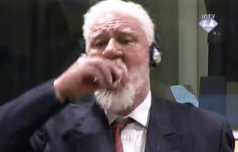 Slobodan Praljak, umirovljeni general pukovnik Hrvatske vojske i Hrvatskog vijeća obrane pred sucima Haaškog suda popio je otrov nakon što mu je sud potvrdio kaznu od 20 godina zatvora zbog, kako je to formulirao sud, sudjelovanja u udruženom zločinačkom pothvatu.