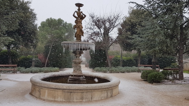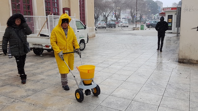 Zimska služba posipa prometnice, a radnici Čistoće ulice u povijesnoj jezgri. U Šibeniku je jutros temperatura zraka – 1, a najbolji pokazatelj hladnoće je zamrznuta fontana u šibenskom đardinu.