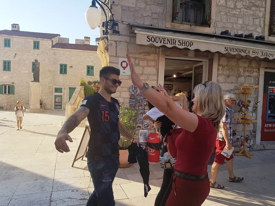 Njegova djevojka Adriana Đurđević, zbog koje je nakon dočeka u Zagrebu najprije otišao u Dubrovnik, nije se niti danas odvajala od svog dragog. Na službeni doček u Šibenik stigla je modno usklađena sa svojim dečkom. Oboje su imali traperice, ona uske i visokog struka, te crne službene dresove naše reprezentacije, s Dujinim brojem 15.