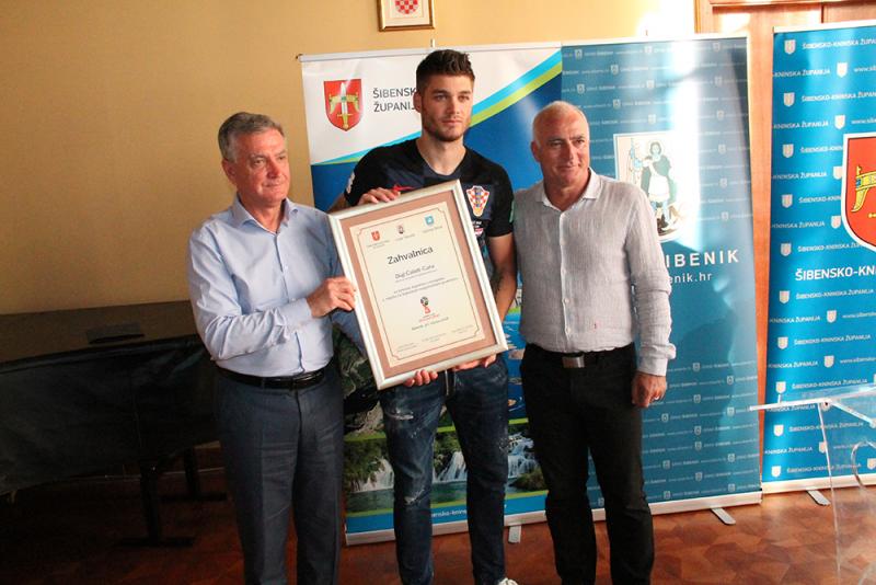 Prijam hrvatskog nogometnog reprezentativca i viceprvaka svijeta Duju Ćaletu-Cara organiziran je danas poslijepodne u Gradskoj vijećnici u Šibeniku.