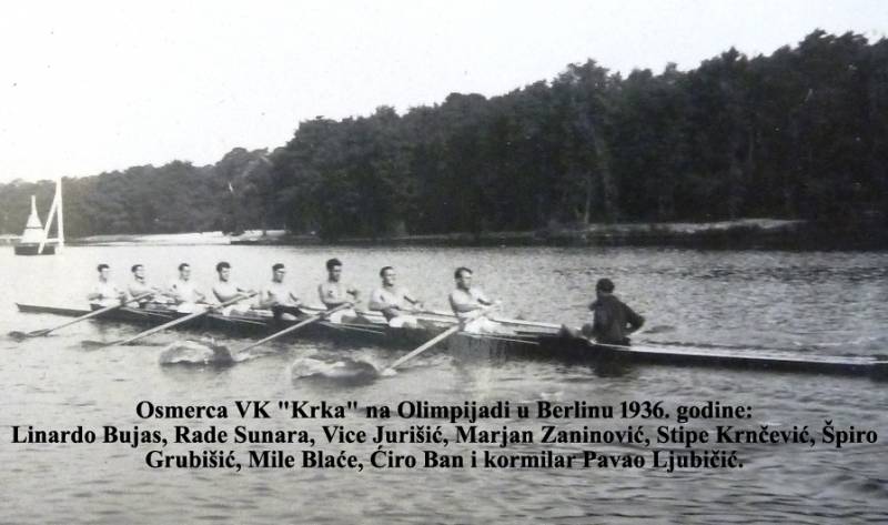 Šibenski sportaši prvi su puta nastupili na Olimpijskim igrama na današnji dan 12. kolovoza 1936. godine. Tog povijesnog dana na Olimpijadi u Berlinu u kvalifikacijama za finalnu utrku nastupio je osmerac Veslačkog kluba "Krka".