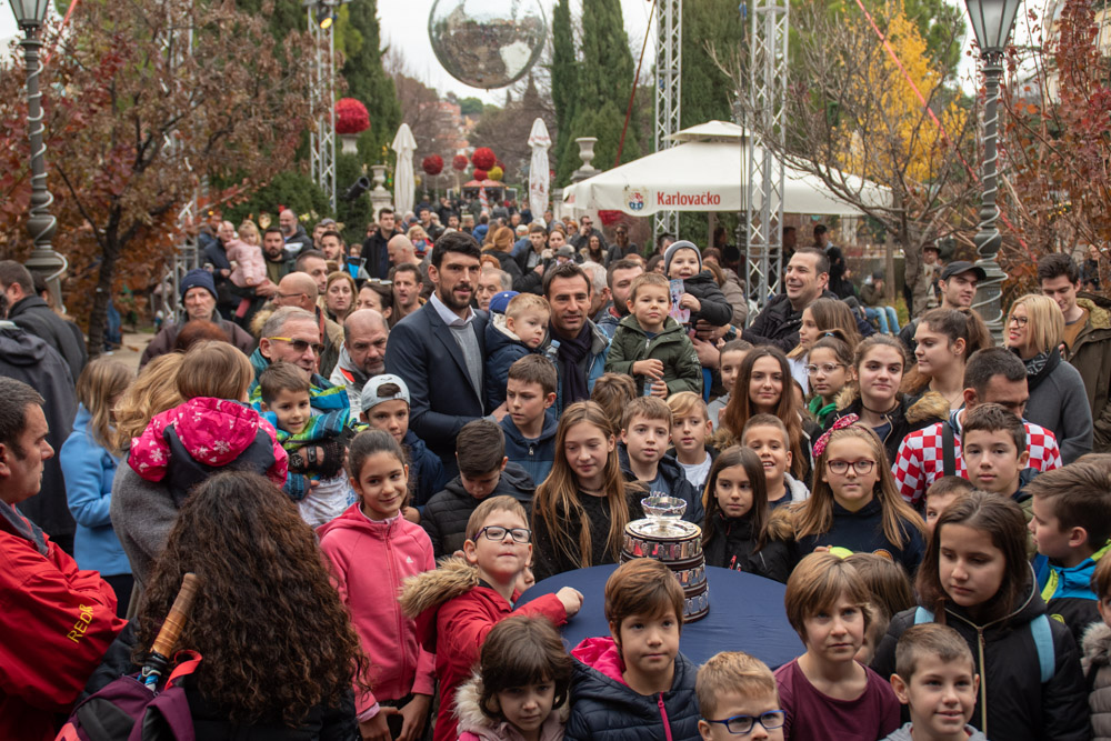 Prepun đardin ljudi, među njima i puno djece dočekao je danas u podne, u predblagdanskom ozračju Adventure zlatne tenisače , Šibenčanina Franka Škugora i njegovog kolegu Ivana Dodiga, članove Hrvatske Davis Cup reprezentacije