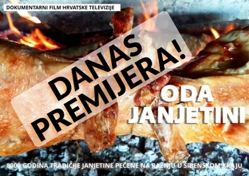 Dokumentarni film "Oda Janjetini - 8000. godina tradicije janjetine pečene na ražnju u šibenskom kraju" premijerno će biti prilazan danas na Prvom programu Hrvatske televizije