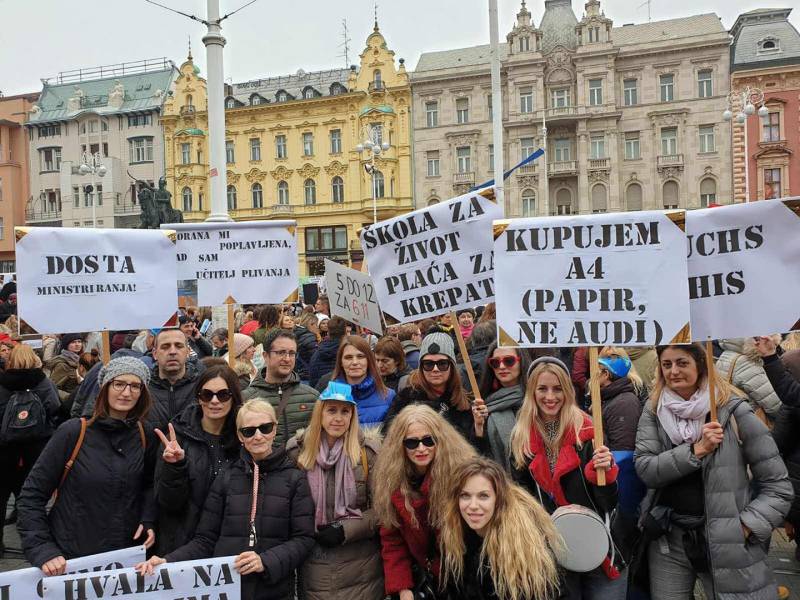 Nekoliko desetaka tisuća učitelja i nastavnika iz cijele Hrvatske, među nji9ma i iz Šibenika okupilo se danas na zagrebačkom Trgu bana Jelačića na velikom prosvjednom skupu 'Hrvatska mora bolje'