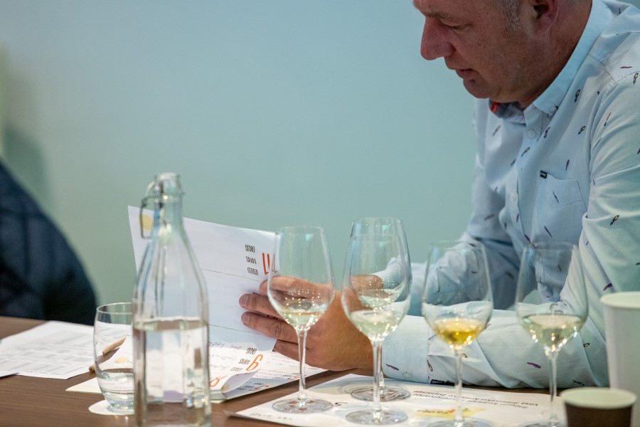 Iskusni i priznati sommleieri: Siniša Lasan, Ksenija Matić, Miho Vidak, Denis Jazvin, Ivo Ivaniš i Božidar Jukić sistemom slijepe degustacije kušali su i ocijenili tridesetak vina te odabrali 24 koja će biti predstavljena na četiri Zoom i četiri Facebook degustacije kroz prosinac.