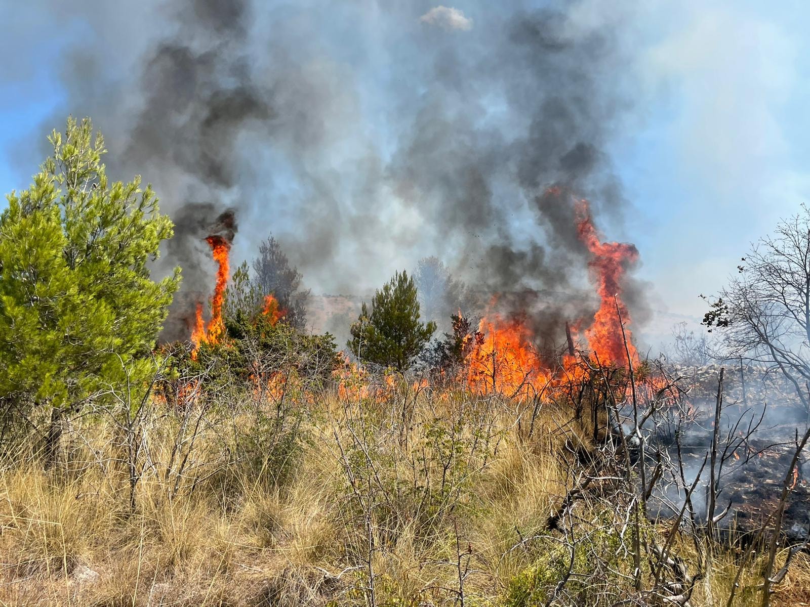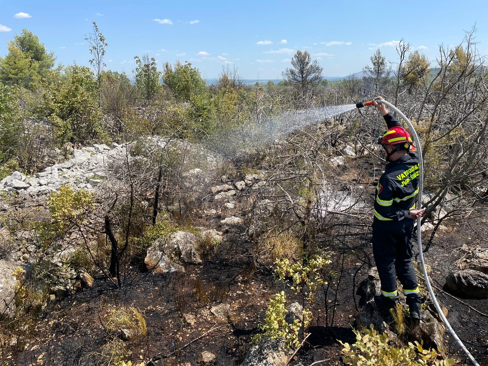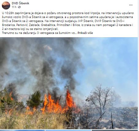 Dojavu o požaru vatrogasci su zaprimili u 10:24h. Na intervenciju su izišli JVP Šibenik, DVD Perković, DVD Brodarica, DVD Šibenik, DVD Zablaće, DVD Grebaštica, DVD Bilice, DVD Primošten, DIP Šibenik i ŽVZ s 58 vatrogasaca i 22 vozila. Na požaru su djelovale i zračne snage, dva kanadera i dva air traktora., a gašenje još traje, priopžćili su iz Vatrogasne zajednice Šibensko - kninske županije.
