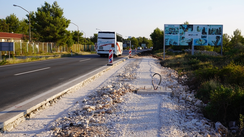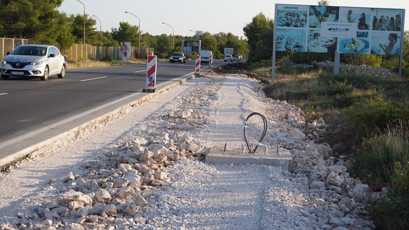 Dobra vijest za one koji vole pješačiti ili voziti bicikl. Uz Jadransku magistralu, na potezu od skretanja u ulicu Velimira Škorpika do skretanja za Solaris uređuje se biciklističko - pješaćka sataza, kako smo doznali u Hrvatskim cestama koje su investitor.