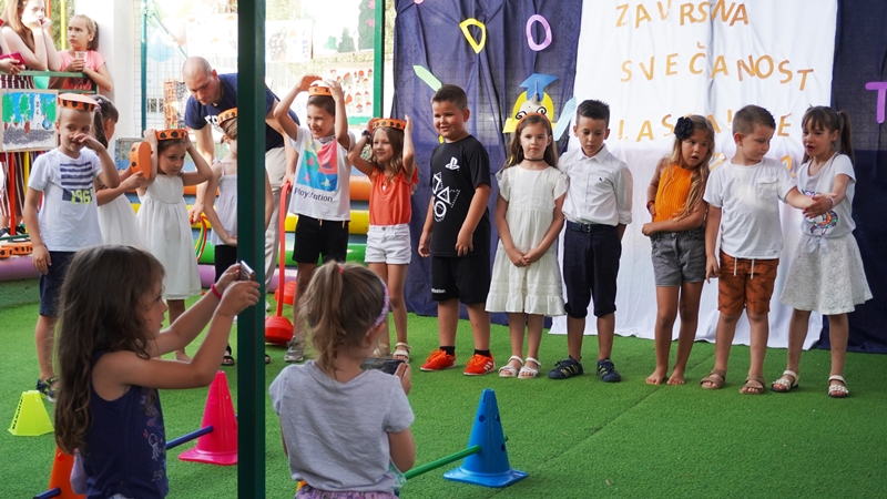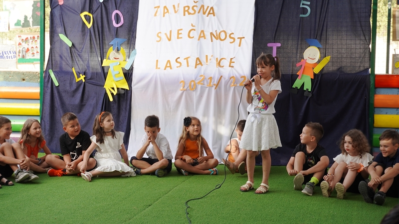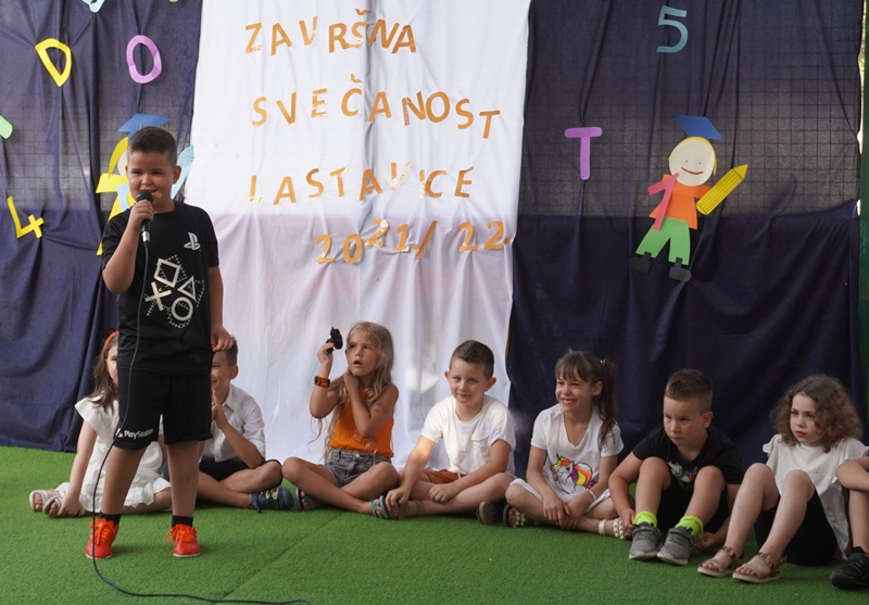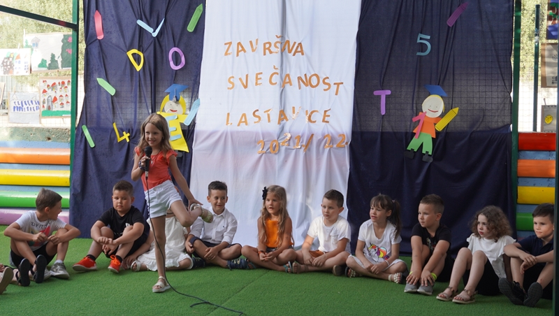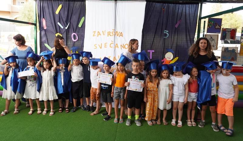 Na kraju su zapjevali pjesmu „Kad je Arsen bija dite koju je napisala Maja Gulin. Poseban statsu u toj završnoj priredbi imali su predškolci koji ove godine napuštaju vrtić i upisuju se u školu. Bili su obučeni poput diplomanata na sveučilištu,a dobili su i svjedodžbu.