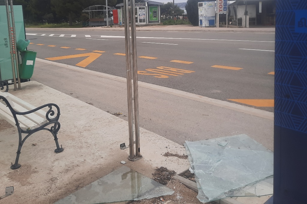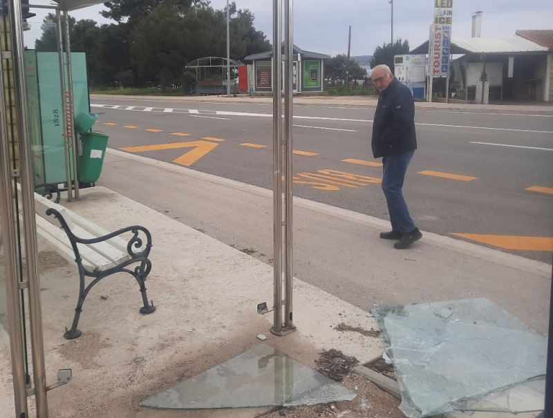 Već pet dana na autobusnoj stajalištu na Brodarici nasuprot plaže Rezalište na nogostupu stoji razbijeno staklo. Netko je ili namjerno razbio staklo na bočnom dijelu staklene nadstrešnice ili se zabio automobilom u nju pod okriljem noći.