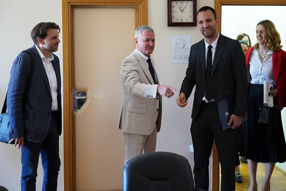 Po završetku sastanka na kojem su sudjelovali zamjenik gradonačelnika Danijel Mileta i pročelnik za gospodarstvo, poduzetništvo i razvoj Petar Mišura, ministar Erlić sa suradnicima obišao je lokaciju bivše vojarne na kojoj Grad planira realizirati projekt „Centar za mlade”.