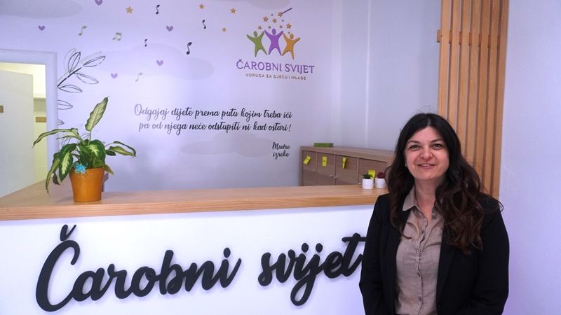 “Moj poziv je odgojitelj. Iskustvo sam stekla kao odgajateljica i kao ravnateljica dječjeg vrtića u Kninu što sam bila dvije godine,a onda sam se upustila u poduzetničke vode i osnovala ovaj centar. Radimo s djecom, mladima, roditeljima i cijelim obiteljima. Provodimo projekte koje pridonose kvaliteti života u cijeloj lokalnoj zajednici. Ja sam iz Kijeva, a u Knin sam došla nakon rata i tu zasnovala obitelj. Uvijek sam se htjela vratiti u rodni kraj, tu raditi i živjeti. Moj život se odvija na relaciji Kijevo - Knin. Centar ove udruge je Knin, ali djelujemo i u Općini Biskupija i Općini Kistanje”, kaže Anita Ercegovac. Ljubav prema poslu koji radi i životu u rodnom kraju uspjela je prenijeti na svoju kćerku Anu, magistru geologije koja se nakon fakulteta vratila u Knin i radi u igraonici “Čarobnog svijeta” iako joj to nije struka.