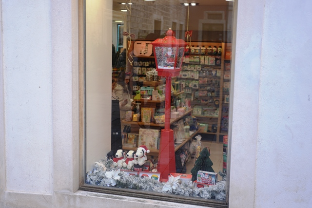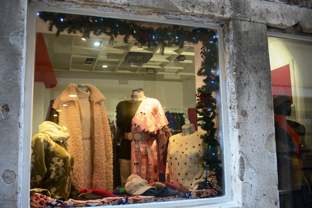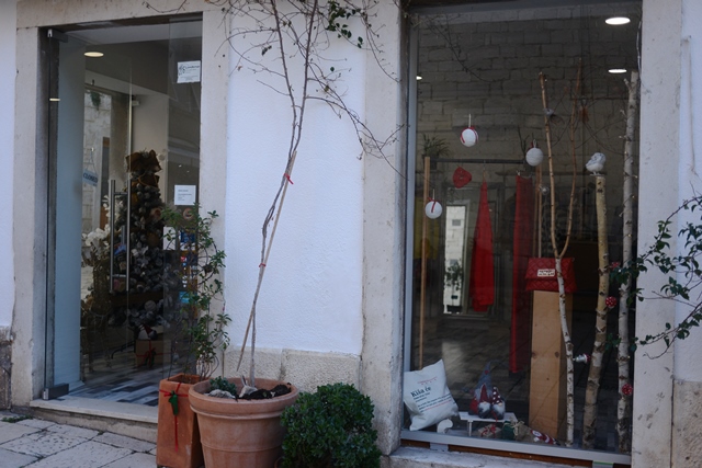 Obišli smo danas Kalelargu, Dobrić i Masnu ulicu. Dosta je poslovnih prostora koji su ili zatvoreni ili napušteni. Samo je nekoliko izloga zaslužilo prijavu na taj natječaj i nagradu. Ima izloga bez ikakvih blagdanskih ukrasa, u dosta njih je stavljeno samo nekoliko božićnih kuglicai umjetnik borovih grana, u nekima su malo ljepši ukrasi i aranžmani, ali bez osobitog pečata vlasnika.