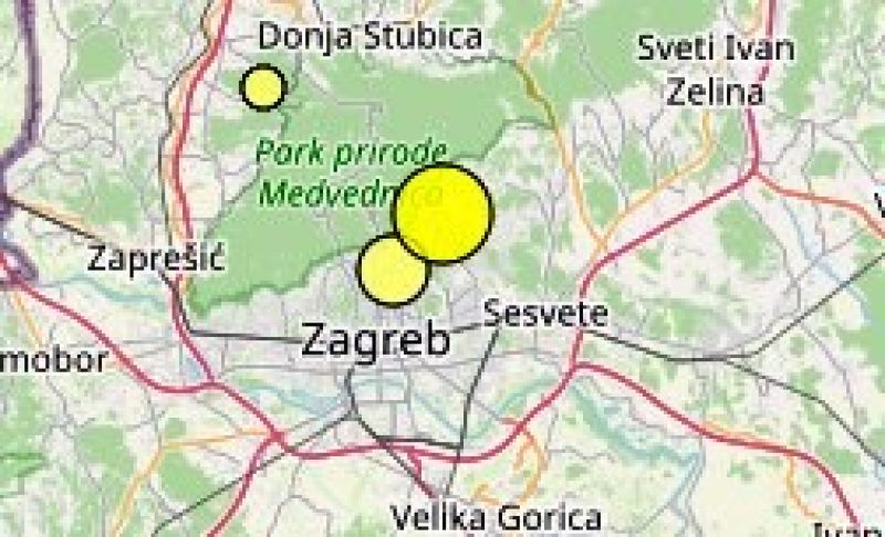 Dva su potresa noćas u razmaku od samo tri minute uzdrmala Zagreb. Prvi magnitude 1.9, zatresao je Zagreb u 1 sat i 55 minuta, a samo tri minute kasnije u 1 sat i 58 min, Zagreb je pogodio drugi, jači potres magnitude 2.8 prema Richteru. Potresi su bili slabijeg inteziteta i nisu prouzročili materijalne štete.
