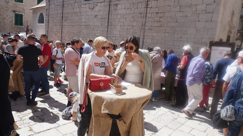 Na kraju su članice Udruge turističkih vodiča Mihovil u šibenskim srednjovjekovnim nošnjama posjetiteljima darovale bajame i suhe smokve.
