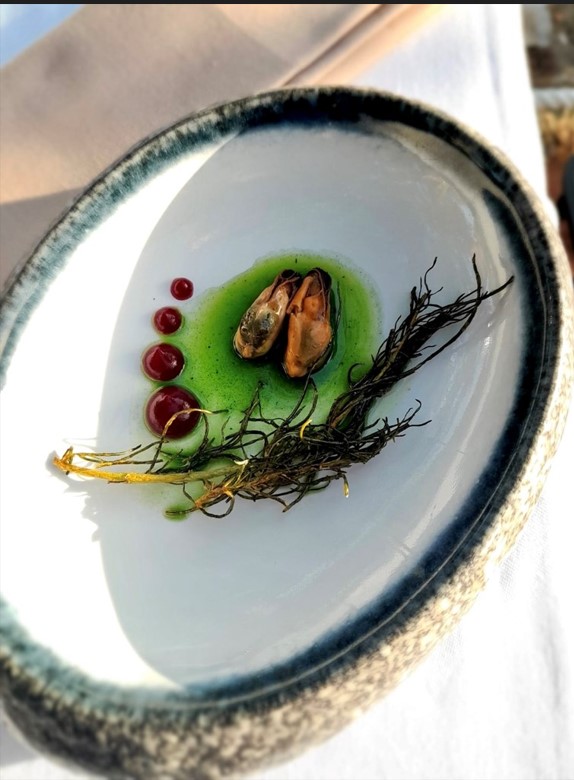 Hit njegove kuhinje su janjeći ravioli ali ima i druga autorska jela popu juhe od škampa s mousseom od dimljene orade, dekonstrukcija hobotnice ispod peke (jus od hobotnice, njoki od batata i koprive, pepeo od luka), bakin verzot(ribani žumanjak, espula od krumpira i poriluka), patka (krema od cikle, demiglace od patke i bobice od smreke).