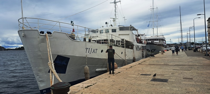 Loše vremenske prilike, kakve imamo posljedjih dana dovode u Šibenik još više turista, pa i onih s velikim jahtama. Nekima je koji su jučer šetali šibenskom rivom privlačan za fotografiranj bio brod Tijat koji je, nakoj što je na njemu obavljen monitoring u Iskra brodogradilištu Šibenik, ponovo vezan na šibenskoj rivi.