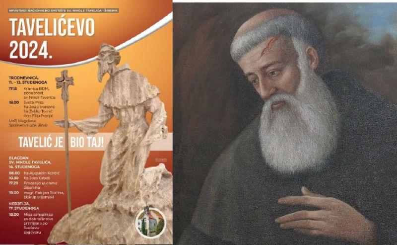 Danas počinje Trodnevnica uoči Spomena preminuća svetog Nikole Tavelića, blagdana prvog kanoniziranog hrvatskog sveca. Svetu misu u rodnom gradu sv. Nikole slave fra Josip Ivanović, gvardijan i rektor Nacionalnog svetišta sv. Nikole Tavelića i mladomisnici fra Željko Tomić i don Filip Pranjić. Na sam blagdan 14. studenoga svete mise slavit će fra Augustin Kordić i fra Jozo Grbeš, a nakon procesija ulicama grada Šibenika, a svetu misu predslavi mons. Fabijan Svalina, biskup srijemski.