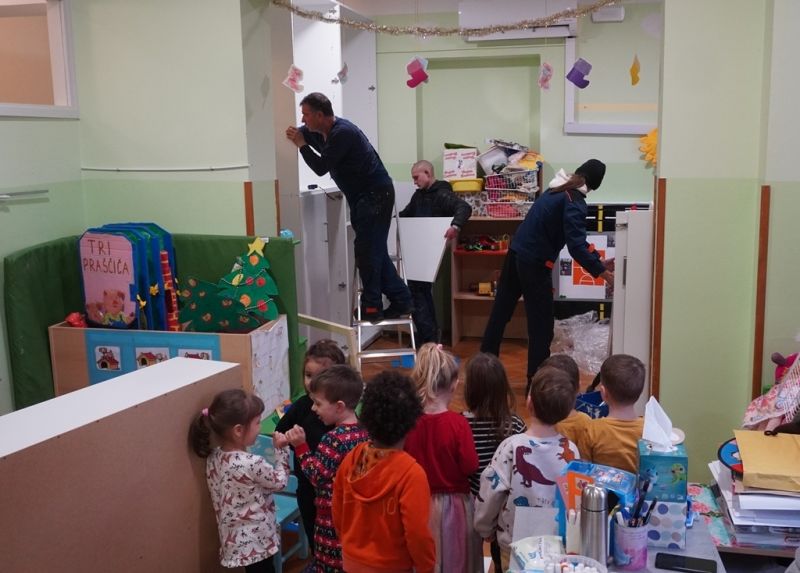 „ Iako je u usporedbi s brodskim namještajem ovaj zadatak bio lagan, svi smo ga ozbiljno prihvatili s posebnom radošću da bismo djeci uljepšali Božić”, ističu vrsni stolari iz Iskra brodogradilišta Šibenik.