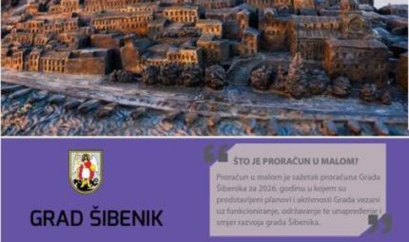 Grad Šibenik i ove je godine pripremio vodič kroz gradski proračun za građane pod nazivom „Proračun u malom“ 2026. Riječ je o informativnoj brošuri koja na jasan i pregledan način predstavlja financijske planove i prioritete Grada, s ciljem približavanja gradskih financija građanima te pojednostavljivanja najvažnijeg dokumenta potrebnog za funkcioniranje Grada.