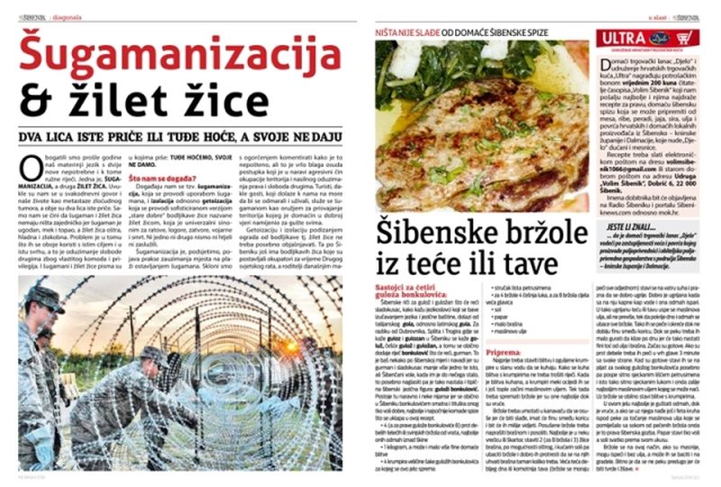 Domaći trgovački lanac „Djelo“ i udruženje hrvatskih trgovačkih kuća „Ultra“ nagrađuju potrošačkim bonom vrijednim 200 kuna čitatelje časopisa „Volim Šibenik“ koji pošalju najbolje i njima najdraže recepte za pravu, domaću šibensku spizu koja se može pripremiti od mesa, ribe, peradi, jaja, sira, ulja i povrća hrvatskih i domaćih lokalnih proizvođača iz Šibensko – kninske županije i Dalmacije, koje nude „Djelo“ dućani i mesnice.