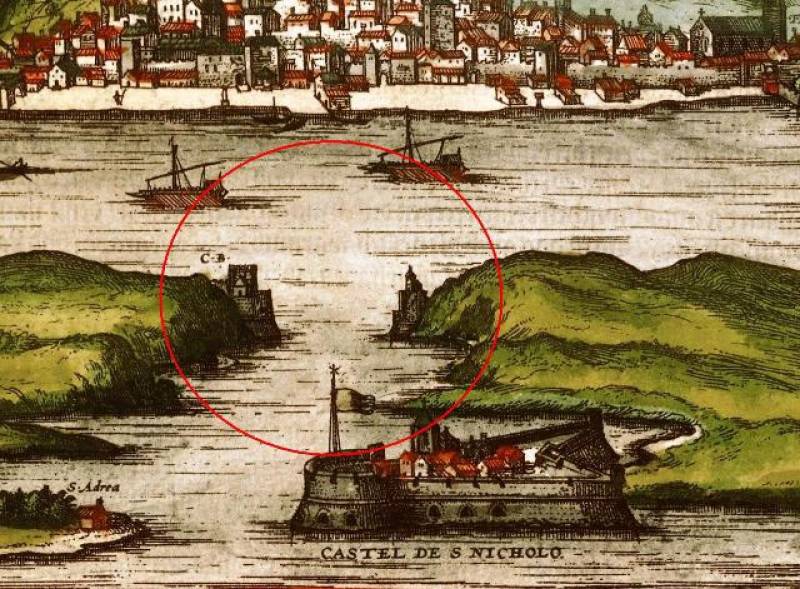 Takve dvije kule, koje su kao izdvojeni dio obrambenog sustava štitile lancem ulaz u luku, postoje na mnogo mjesta, ali su jedino u Šibeniku udaljene čak oko 1 kilometar od gradskih bedema.