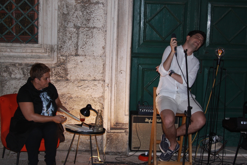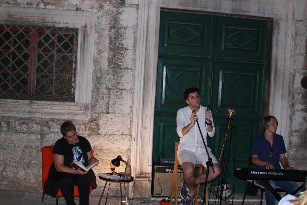 U intimnoj atmosferi na Maloj loži Orjana je čitala njegove stihove, a mladi glazbenici su interpretirali Arsenove pjesme pred onima koji cijene i vole Arsena. U pjesmama koje je recitirala Orjana bilo najviše Šibenika i šibenskog kraja, primjerice „Posljednji tango u Đevrskama“ ili pjesma o zatvaranju šibenskih kina i vladanju mediokritetstva.