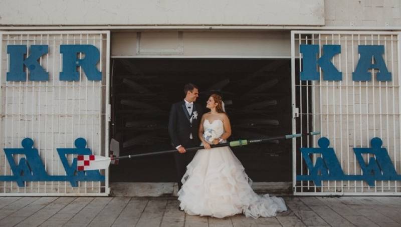 Poznato je koliko je nedavno preminuli profesor Ivo Livaković volio svoj Šibenik, a tu je ljubav, očito prenio i na svoju djeci u unuke. Ovih dana objavljene su neobične fotografije njegove unuke Enrice Locci i njezinog izabranika koji su se vjenčali u Šibeniku, a fotografirali su se i ispred Veslačkog kluba Krka. I to ne bez razloga. Naime, i Enrica i Matteo bili su uspješni članovi veslačke reprezentacije Italije, a oboje su potekli iz istog kluba Societa Canottieri „Timavo“ iz Monfalcona u kojem žive. Sretno mladenci!