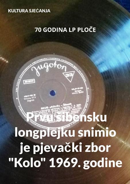 70 GODINA LP PLOČE; Prvu šibensku longplejku snimio je pjevački zbor "Kolo" 1969. godine kada je "Jugoton je izdao prve licencne rock LP ploče; The Beatlesa "Yellow Submarine" i The Rolling Stonesa "Beggars Banquet". Drugi šibenski LP izdao je Arsen Dedić 1970. godine, a treći i četvrti Vice Vukov i Mišo Kovač 1971. godine.