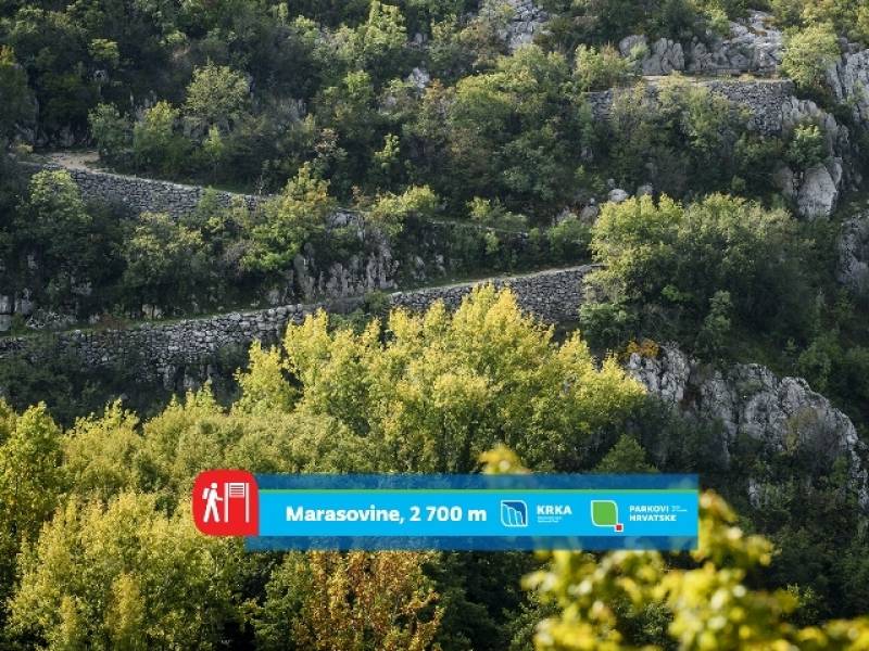 Od ušća, tamo gdje Krka prvi put poljubi more, pa do plodnih polja uzvodno od Brljanskog jezera stigli smo do posljednjeg kilometra poučno-pješačkih staza u Nacionalnom parku „Krka“. Tuda put vodi prominskom stranom rijeke, duž dugih suhozida, do starih vodenica, stupa i pojilišta nizvodno od Bilušića buka. Šumarci graba, hrasta, klena i jasena obalu čine još ljepšom, kažu u JU NP Krka predstavljajući još jednu stazu - Marasovinu.