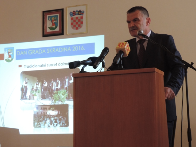 Svečana sjednica Gradskog vijeća grada Skradina održana je danas u povodu dana grad i blagdana svegot Jeronima, zaštitnika grada. Govoreći o tomu što je napravljeno u proteklih godinu dana, gradonačelnik Nediljko Dujić ogradio se da neće govoriti i nabrajati pojedinačne projekte i zbrajati kilometre ceste koje su izgrađene, groblja koja su uređena, vodovodne cijevi koje su postavljene niti brojne projekte zahvaljujući kojima su uzdigli kulturni i društveni život u Skradinu, posebno Kulturno ljeto.